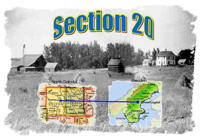 Brita had become a widow by the time she emigrated from Sweden to the United States and settled on Section 20. Her husband, Jonas Olofsson, died of some sort of respiratory affliction on December 29, 1882 at age 45. Brita, "a plucky lady who trusted the Lord for help and guidance went ahead with her plans and preparations--the tickets having been already purchased." In the cold spring of 1883, Brita and her five children, Olof, Sigrid, Esbjor Johan and Brita, set sail for America. Sigrid died November 3, 1884. Esbjor died May 9, 1891. Brita (Betsey) married Johan Albin Ost. Johan (John Johnson) married Elna Kristina Helgsten.