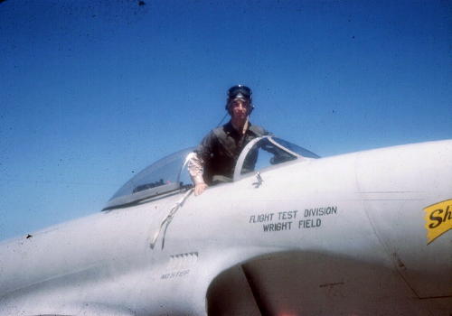 | | | | Dick and a North American F-86. | Dick broke the world's speed record in this aircraft. |
