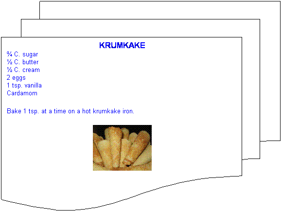 Aunt Margaret: Our mom had a krumkake iron—someone borrowed it from your Mom [Ann], never returned it!