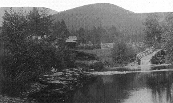 “Svens”, the farm in wich Esbjörn Svensson’s family lived in. This photo is taken in the 1920’ies. Then this old building was used as a bakery. There were six siblings in this family: four brothers and two sisters. All of Brita’s siblings remained in Överhogdal after she departed for America. Three of them still have living descendants in Överhogdal and other parts of Sweden. The siblings, Sven, Olof, Hans, Sönne, Jonas and Brita, were the children of Esbjörn Svensson and his wife Brita Hansdotter. Esbjörn Svensson was born on the 14th of December 1797 in Överhogdal. Esbjörn Svensson and Brita Hansdotter were married on the 20th of April 1823. Brita Hansdotter came from another village, and was born in Boda parish in the province of Dalarna on the 8th of December 1795. In 1823, Esbjörn Svensson took over the operation of his ancestor’s old farm, “Svens”, from his stepfather. “Svens” had been in the family since the first preserved records. It had been handed down from father to son. Esbjörn Svensson had the responsibility for “Svens” until 1852. Afterwards, Esbjörn Svensson and Brita Hansdotter remained at “Svens” and lived with their son Olof Esbjörnsson. Brita Hansdotter died on the 10th of October 1862 and Esbjörn Svensson died on the 17th of December 1882. The Esbjörnsson brothers were great hunters. It is told that, in their youth, their main activity was hunting. One of the brothers, either Sven, Jonas or Hans, shot several bears. I’ve been told that, when they were out hunting, they would go to a chamber in the mill at “Kvarnbacken” to rest. (This homestead in Överhogdal will be described later.) The sound from the waterfall in the little creek would put them to sleep.